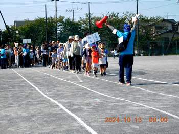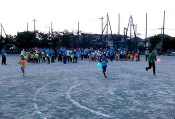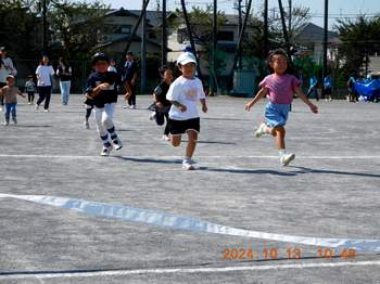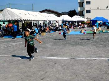 | 園児はフィールドを真っすぐに、小学生は低学年~高学年の順にトラックを半周、